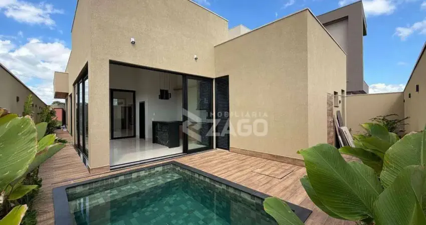 Casa térrea a venda no Condomínio Damha III em Uberaba/MG, rica em armários planejados, com varanda gourmet, piscina e escritório.