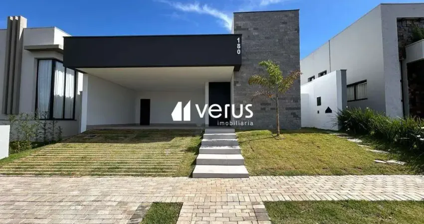 Belíssima casa em condomínio de Alto Padrão, com total segurança e tranquilidade. O imóvel possui 214,4 m² de área privativa em um lote de 370,52 m². Conta com sala ampla em dois ambientes, 3 suítes espaçosas, escritório, lavanderia e despensa, área gourmet com churrasqueira, ideal para receber amigos e família, além de lavabo interno e externo. Projeto moderno com acabamentos de luxo, pedras naturais, ripados elegantes e detalhes de alto bom gosto. Perfeita para quem busca conforto, sofisticação e qualidade de vida em uma das melhores regiões. Condomínio com portaria 24 horas, academia, quadras poliesportivas, playground, quiosques, salão de festa e mini mercado. Não perca essa chance exclusiva