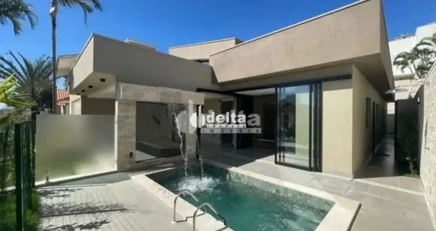 Linda casa nova, térrea, situada em um dos condomínios mais desejados da Zona Sul de Uberlândia, com área de lazer completa e rigoroso sistema de segurança. Com 215 m² de construção em um terreno de 384 m², incluindo sala com pé direito duplo, escritório, lavabo, 3 suítes amplas com janelas e portas com persianas automatizadas, cozinha gourmet completa, lavanderia, banheiro de apoio, circulação externa, paisagismo com irrigação automática, espaço gourmet, ducha e piscina com cascata, e geração própria de energia fotovoltaica. Diferenciado por estar localizada em condomínio consolidado, com ampla área verde ao redor das praças de esportes. Além da qualidade da construção e dos acabamentos. Assim como a integração entre os ambientes internos e externos, a piscina com cascata e o sistema de energia fotovoltaica. Soma-se a isso, a raridade de terrenos disponíveis no condomínio, a oportunidade de adquirir uma casa nova é bastante valorizada. A propriedade também oferece garagem para 2 veículos cobertos e 2 descobertos.. ref. 36696 atualizado em 05/01.
