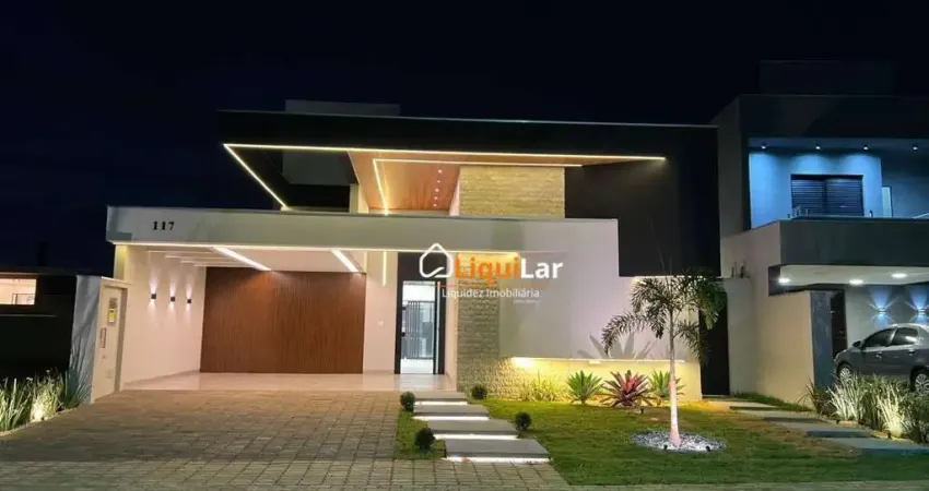 Casa à venda em condomínio fechado, com projeto moderno e acabamento de alto padrão, ideal para quem busca conforto, segurança e valorização. O imóvel conta com 3 suítes, sendo 1 master com closet e pia dupla, salas amplas com pé-direito duplo, home office iluminado naturalmente, cozinha privativa com vista para a área gourmet e piscina, além de uma área gourmet completa com ilha e teto em vinílico. A piscina oferece hidromassagem, bar molhado e aquecimento solar, com banheiro externo exclusivo para maior comodidade dos convidados. Dispõe ainda de lavanderia coberta com tanque duplo, despensa funcional e sistema de energia fotovoltaica com capacidade de 700 kWh/mês, garantindo economia e sustentabilidade. A garagem para 4 veículos conta com ponto para carro elétrico, complementada por acabamentos em mármore e metais de alto padrão que reforçam a sofisticação do imóvel. A portaria com reconhecimento facial assegura tecnologia e segurança de última geração. Localizado em posição estratégica dentro do condomínio, na parte alta e próxima à pracinha, o imóvel proporciona tranquilidade e praticidade, estando distante da área de lazer e da portaria. O condomínio oferece infraestrutura completa de lazer para todas as idades. Pronto para morar, este imóvel é uma oportunidade única para quem deseja exclusividade, conforto e qualidade de vida. Agende já sua visita.