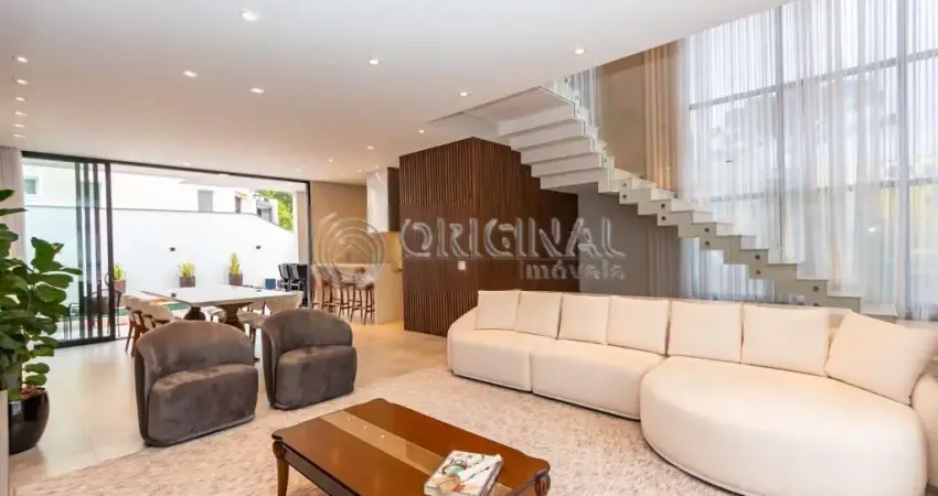 Ao entrar, você será recebido por um imponente pé direito duplo e esquadrias do chão ao teto, que garantem uma iluminação natural privilegiada e uma atmosfera acolhedora. O projeto arquitetônico promove a integração total da área social.