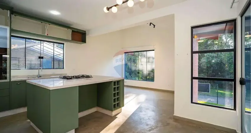 Casa no Condomínio Fazenda Resort Piraquara com 120 m² construídos em terreno privativo de 1035 m², recém construída, 3 quartos, sendo 1 suíte, cozinha integrada com móveis planejados, sala com lareira e pé direito duplo e um amplo quintal com área verde e árvores frutíferas.