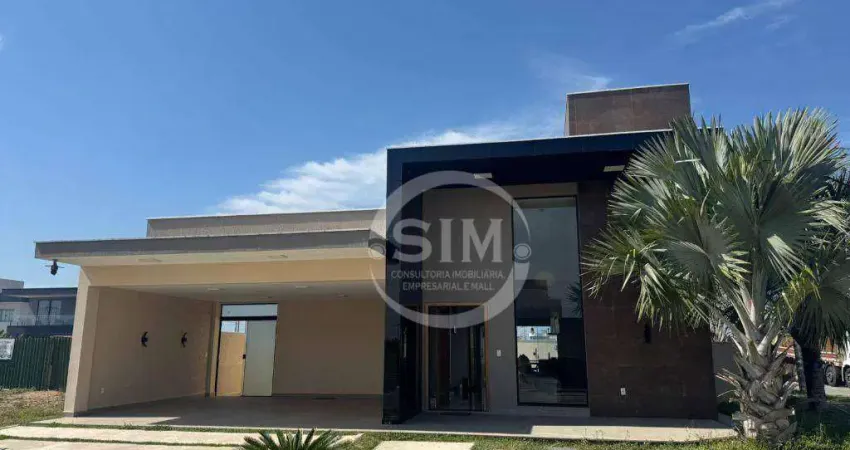 Encantadora residência linear em terreno de esquina com 425m², projeto moderno, ambientes amplos e excelente padrão de acabamento. Ideal para quem valoriza qualidade de vida em um condomínio completo e seguro.