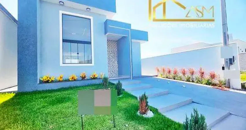 Casa Linear de Alto Acabamento Composta por 3 Quartos (Sendo 1 Suíte com Closet), Sala Ampla, Cozinha Americana c/ Bom Espaço e Fino Acabamento, Espaço Gourmet Integrado, com Churrasqueira Linda, Lavabo, Área de Serviço Coberta, Chuveirão, Quintal Amplo c/ Piscina e na Frente Um Lindo Jardim.