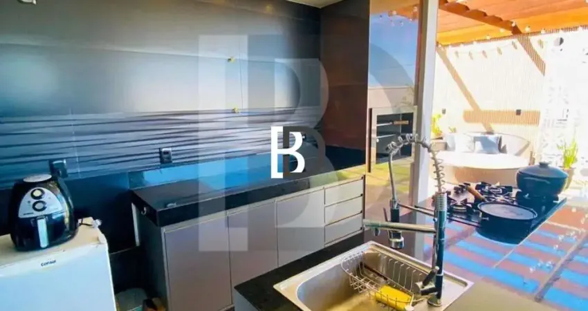 Área gourmet completa com churrasqueira, pergolado em madeira Massaranduba, deck com iluminação, piscina em arraia com prainha hidro aquecida, cascata luxuosa com queda dágua caindo do teto, chuveirão duplo, depósito nos fundos lavabo luxo.