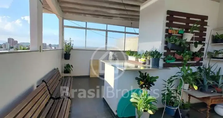 Apartamento tipo casa à venda perto do Méier: 3 quartos, terraço com churrasqueira, rua fechada com câmeras e interfone, vista livre e pôr do sol.