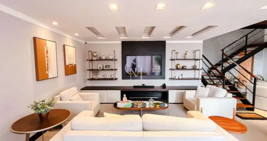 No primeiro pavimento, a casa apresenta uma sala de estar ampla e aconchegante, jardim de inverno, sala de jantar, lavabo e uma cozinha semi integrada totalmente equipada com armários planejados, perfeita para quem valoriza funcionalidade e organização.