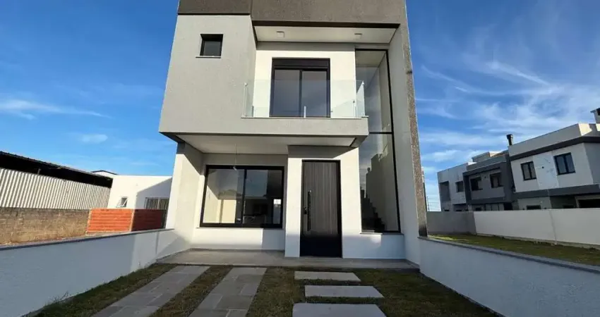 CASA NOVA EM CONDOMÍNIO FECHADO, 132m², 3 SUÍTES, PÁTIO FRENTE E FUNDOS, 2 VAGAS, PRÓXIMA AO CENTRO DE GRAVATAÍ