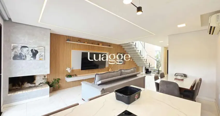 Sobrado contemporâneo semi mobiliado, com excelente padrão construtivo, composto por 3 suítes, sendo a suíte master com closet. Living integrado com lareira e lavabo, proporcionando conforto e funcionalidade. Área externa com pátio privativo, piscina aquecida e espaço gourmet, ideal para receber amigos e familiares. Possui vaga para 2 carros.