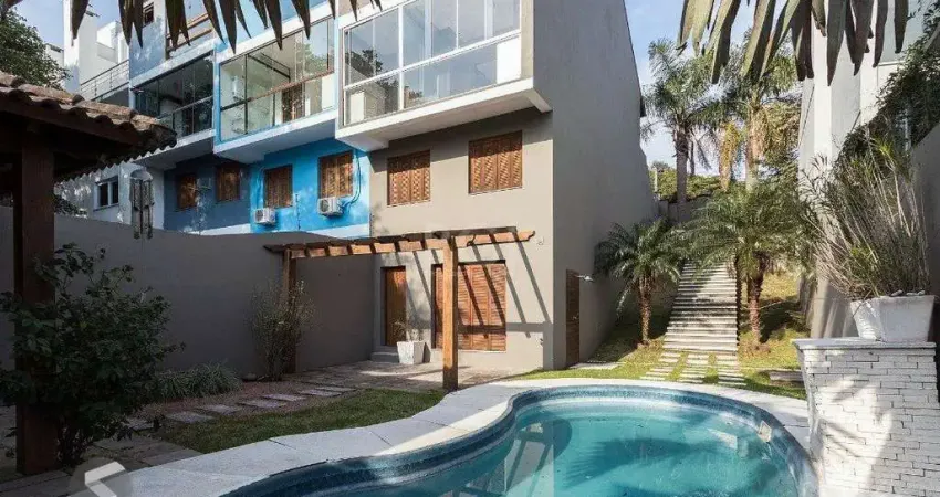 Casa lindíssima, sua área privativa 262,98. localizada em Ipanema, no Imperial Park, com 3 dormitórios, um deles suíte com hidro e closet, living amplo, cozinha com móveis planejados, sala de jantar com churrasqueira, e lareira na sala de estar, 3 banheiros sociais, sala de tv ou gabinete, podendo ser opção para 4° dormitório, garagem para 2 carros. A casa tem um terreno ao lado interligado e próprio, no qual fica uma linda piscina, quiosque com churrasqueira e jardim .