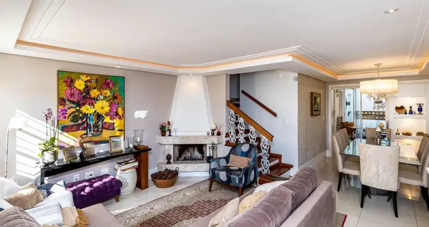 O imóvel se destaca pela sua ampla sala no terceiro pavimento, também equipada com lareira, onde se pode apreciar uma vista definida do bairro. A área íntima inclui a suíte com closet e banheiro social, além de um gabinete e cozinha planejada. A casa é privilegiada por ótima iluminação e ventilação natural, características presentes em todos os cômodos, garantindo um ambiente saudável e agradável.