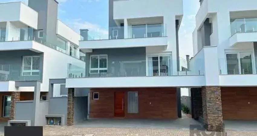 As margens do Rio Guaíba. Linda casa semi mobiliada em condomínio á venda no bairro Pedra Redonda com 3 suítes, possibilidade de 4 suítes utilizando o terraço. No térreo, amplo living com 3 ambientes, lareira, lavabo, cozinha americana com churrasqueira, área de serviço com entrada independente, banheiro auxiliar e amplo pátio. No segundo andar, 3 suítes, com sacada. No piso superior, amplo terraço com banheiro, podendo ser utilizado como 4 dormitório ou home office, sacada e vaga coberta para 2 carros. Condomínio com excelente infraestrutura, portaria 24hrs, zeladoria, espaço gourmet e salão de festas, na beira do Rio Guaíba.