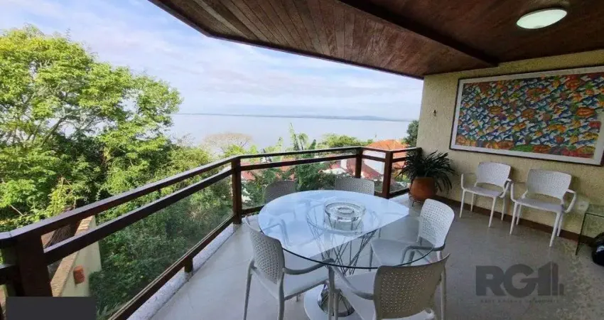 Magnífica Casa em condomínio com vista incrível do Rio Guaíba, 3 dormitório, sendo 1 suíte com hidromassagem e closet, estar íntimo com jardim de inverno, hall de entrada, lavabo, copa e cozinha incrivelmente integrada com jantar e estar, espaço de leitura com lareira e iluminação zenital, proporcionando uma belíssima vista tanto a noites estreladas, quanto a um lindo céu de brigadeiro, espaço churrasqueira com vista panorâmica, gabinete com lareira, garagem fechada para 4 carros com móveis em marcenaria sob medida, depósito, lavanderia com banho auxiliar, pátio com casa de árvore para crianças. Venha conhecer esta maravilhosa residência, agende sua visita. Estudamos seu imóvel no negócio. Além deste, mais de 25 mil opções em nosso site.