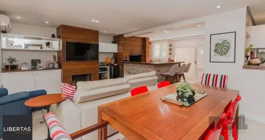 Excelente casa em condomínio, com 249m² privativos, com uma arquitetura contemporânea, de extremo bom gosto e muito confortável. Sao 3 dormitórios sendo uma suite com closet, armários de rouparia na escada, living de 3 ambientes com lavabo, lareira, espaço gourmet com parrilera, fogão a lenha, jardim de inverno interno, cozinha integrada com muita mobília fixa sob medida, lavanderia separada e deposito. $ vagas de garagem. Imóvel impecável todo reformado decorado por arquiteto, com toda elétrica, hidráulica, luminotectica, sistema de gas novos. Casa com um sotão com mobília de sala de tv, podendo ser um 4° dormitório com banheiro completo, . Condomínio com portaria 24hs, salão de festas e piscina, sistema de câmeras. Localizado próximo ao Iguatemi, colégio Farroupilha, Anchieta, Unissinos e todas as facilidades do bairro. Estudamos seu imóvel no negócio. Além deste, mais de 25 mil opções em nosso site.