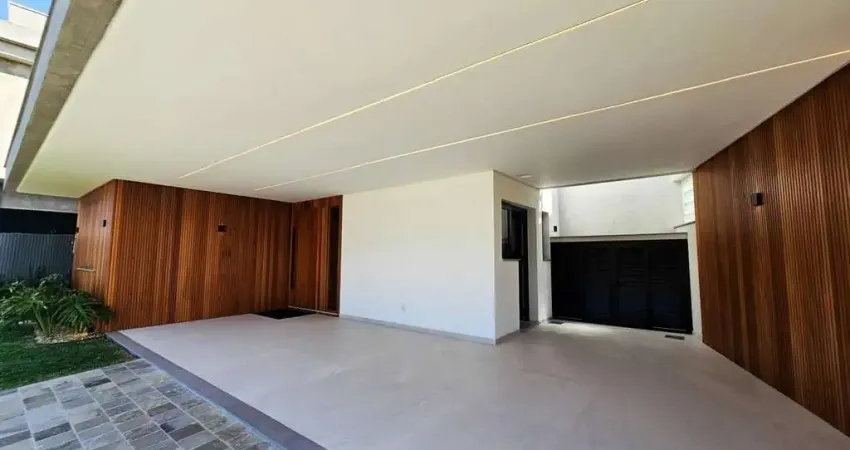 Residência com arquitetura contemporânea, fachada com volumetria marcante e acabamento em madeira natural. Garagem coberta e acesso social independente.