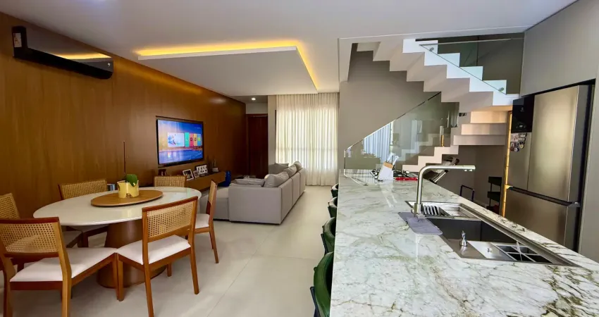 Casa com 185,14 m² construído, distribuídos em 03 amplos dormitórios, sendo 01 ampla suíte com closet, banheiro social, lavabo, sala de estar/jantar, cozinha mobiliada com balcão em ilha, lavanderia separada, área com churrasqueira e 02 vagas de garagem cobertas.