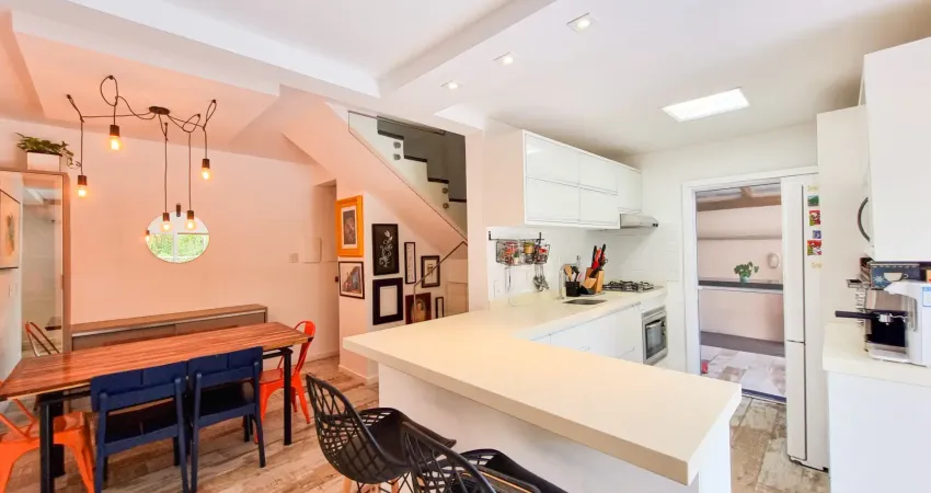 O térreo é um ambiente pensado para receber bem, com carinho e acolhimento. Possui salas de TV e jantar integradas, lavabo e cozinha em conceito aberto, de muito bom gosto.