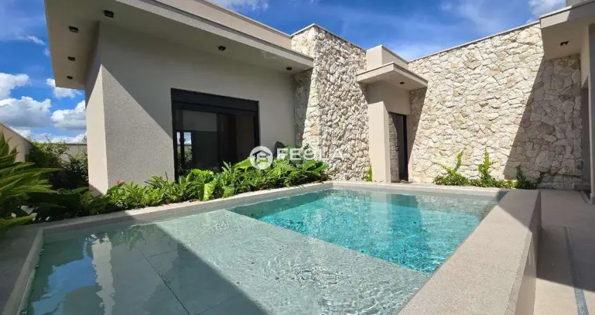Lindo casa térrea em condomínio fechado na cidade de Americana/SP em fase final de obra com 3 suítes, sendo uma máster com closet, living ampliado, hall de entrada, sala de tv, escritório, sala de jantar, cozinha, lavabo e depó(link removido)ço gourmet, área de serviço, piscina, banheiro externo e garagem para 4 carros, sendo 2 cobertas.