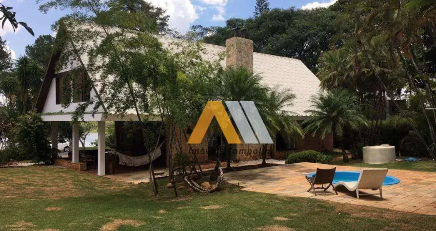 O imóvel possui 02 quartos, sendo uma suíte. Um quarto de empregada e quatro banheiros, sala com mezanino, sala externa, 02 lareiras, poço, piscina com hidromassagem (opção para aquecimento), sauna seca, concreto armado e acabamento de primeira. melhor localização no condomínio, próximo à área de lazer, portaria e do Golf Club.