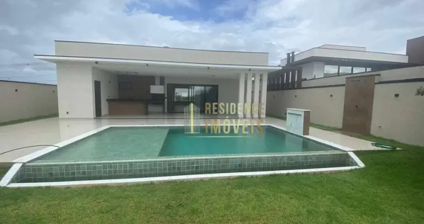 Casa térrea com 3 suítes amplas com closet, preparadas para ar condicionado e água quente, sala 2 ambientes integradas com área gourmet com churrasqueira, piscina com cascata, borda infinita e aquecida, lavabo, banheiro para apoio da piscina, corredor lateral dos dois ladas da casa, área de serviço, dispensa, quarto de despeja, 6 vagas de garagem sendo 3 cobertas e 3 descobertas. Tudo isso com um acabamento de ótima qualidade e bom gosto.