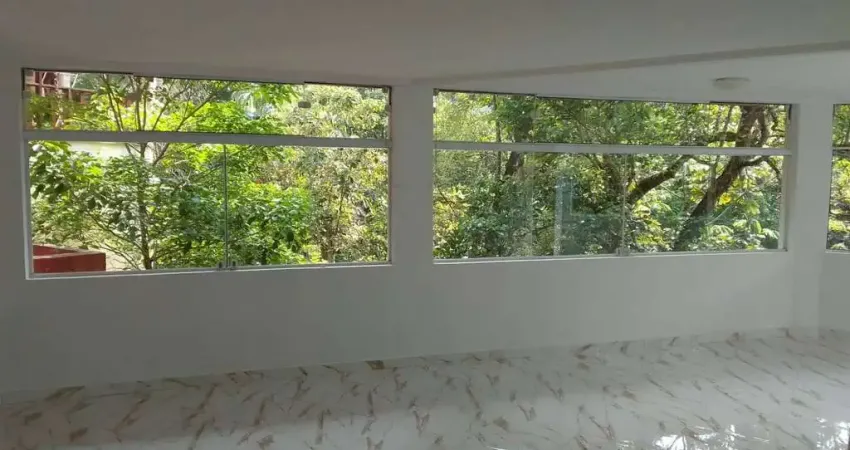 PISO TÉRREO: Garagem com 100m2 para 6 carros e jardim( salão embaixo para fazer depósito), entrada sala ampla com sala de jantar/copa e pé direito 4 e 5 metros, suíte completa, uma varanda enorme e espaçosa com vista eterna verde pois as árvores são intocável devido a nascente, lavabo completo, cozinha ampla azulejada, acesso ao corredor/dispensa, para lavanderia com porta para saída lateral e garagem