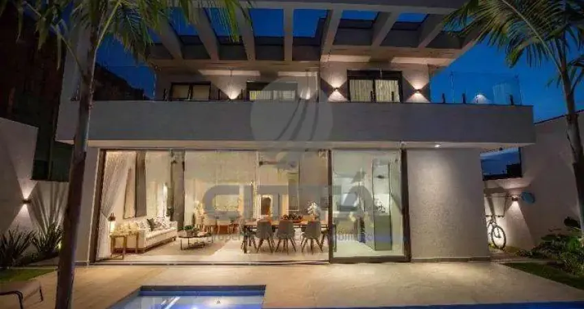 Belíssima residência à venda totalmente mobiliada e decorada, com acabamentos de alto padrão e projeto moderno, que privilegia iluminação natural e aproveitamento dos espaços.