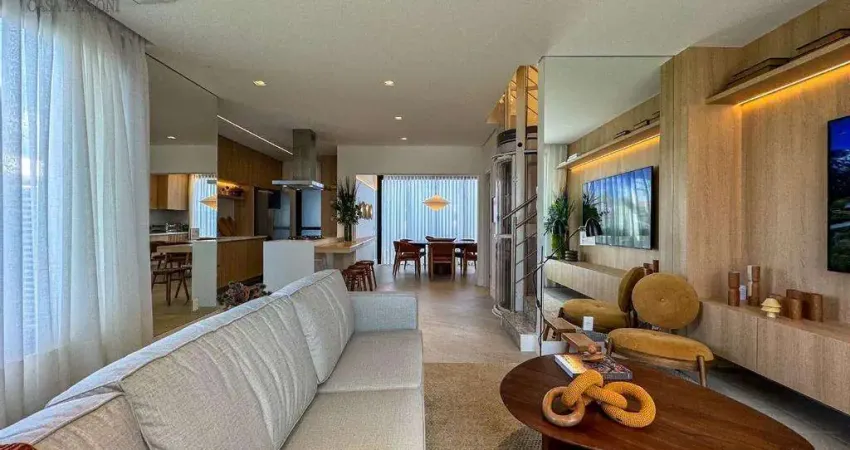 Características do Imóvel:Área Construída: 208m² + terreno-Pavimento Térreo: Entrada Principal, Entrada de Serviço, Sala de Estar, Sala de Jantar, Lavabo, Cozinha, Lavanderia, Área Gourmet Térreo, Escada de Acesso , Elevador, Quintal Privativo , Área Técnica para Aquecedor, 2 Vagas de Garagem sendo uma com infraestrutura para Carro Elétrico.- Pavimento Superior: Escada de Acesso, Suíte Master com Closet, Suíte 1, Suíte 2, Área Técnica ( Ar-Condicionado ) e Elevador.- Pavimento Superior ( Rooftop ): Escada de Acesso, Sala Multiuso, Banheiro Social, Varanda Gourmet, Deck, SPA e Elevador. Diferenciais: Acabamentos de primeira linha, com materiais nobres e detalhes que refletem bom gosto, sofisticação e alta qualidade garantindo durabilidade e elegância. Condomínio Infraestrutura: Portaria 24h Espaço Delivery, Salão de Festas, Academia, Piscinas Adulto e Infantil, Playground, Pet Place, Beach Tennis , Pomar , Redário, Horta e Mini-Campo.
