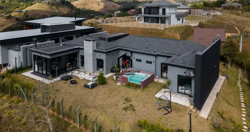 Com arquitetura moderna e totalmente mobiliada, o imóvel oferece três suítes espaçosas, garantindo privacidade e bem-estar. A sala de estar com lareira cria o ambiente perfeito para os dias mais frios da serra, enquanto os ambientes climatizados com ar-condicionado proporcionam conforto em todas as estações do ano. A cozinha planejada combina funcionalidade e elegância, ideal para quem valoriza praticidade sem abrir mão do bom gosto.