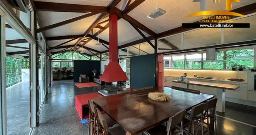 A Batelli Imóveis apresenta esta charmosa residência, com muito estilo e exclusividade incomparáveis, projeto contemporâneo, despojado e único, muito clara e ventilada, com ambientes integrados e amplas áreas envidraçadas, total privacidade e integração com a natureza, totalmente envolta por área preservada de mata atlântica.