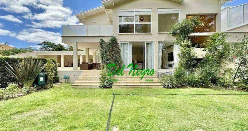 PORTEIRA FECHADA! Linda casa, contemporânea, reformada, integrada. Casa de esquina em ótima localização. Rua tranquila e arborizada sem saída. Muita privacidade e com vista para a área preservada. Casa alta com muita privacidade, voltada para natureza. Imóvel repleto de armários. Portas e janelas em alumínio branco e vidro, com persianas nos quartos. Projeto de gesso e iluminação. Pisos em porcelanato, cimentício antiderrapante na área externa e tacos de madeira na área íntima. Louças e metais de qualidade. Projeto de paisagismo formado, com grande gramado. Com 3 acessos: social, lazer e serviço. Entrada social pela garagem, por uma porta de madeira pivotante. Casa envidraçada com pé direito alto, bem arejada, ensolarada e iluminada. Hall social imponente. Lavabo com tampo em madeira. Escada de madeira com guarda corpo de vidro e uma porta de correr. Hall íntimo no piso superior com roupeiro. Escritório envidraçado com grande varanda voltada para natureza e jardim. Com 3 suítes planejadas com closets, ar-condicionado Q e F, varandas e terraços, sendo a master com saleta anexa e closet Sr. e Sra. Banheiros com tampos em mármore quartzo, espelho, gabinetes e box de vidro. Sendo a master com tampo em L, espelho grande, 2 cubas e banheira. Living para 6 ambientes integrados com ar-condicionado Q e F, voltados para o lazer com varanda gourmet, piscina e jardim. Salas de estar, TV/Home Theater equipado, lareira à gás, sofá importado, bar, jantar, almoço e cozinha. Cozinha planejada, integrada à sala jantar, almoço/café da manhã e varanda gourmet, repleta de armários, gabinetes, tampos em quartzo, 2 cubas inox, torneira gourmet, fogão 5 bocas Brastemp Ative, coifa inox Electrolux, forno Brastemp. Área de serviço aberta ensolarada e lavanderia fechada com tanque, armários. Quarto e banheiro de serviço. Varanda gourmet com churrasqueira inox, forno de pizza inox, coifa inox e depósito para lenha e carvão. Vestiário com bancada em travertino, gabinete e chuveiro. Piscina redonda de alvenaria, revestida com pedras castelato, aquecida por trocador de calor, iluminada com grande solário e casa de máquinas. Quadra de beach tênis no jardim. Tabela de basquete. Salão Multiuso 56 m² (14m x 4m). Ideal para academia, jogos, festa, ballet, home office, atelier, estúdio, música, cinema. Banheiro. Depósito/Arquivo com sala cofre, para documentos. Garagem: 3 vagas cobertas. Depósito de gás. Aquecimento: Solar com suporte elétrico. Abastecimento de água: Sabesp. Armazenamento: 2.500 litros. Esgoto: Fossa, fácil acesso ao shopping da Granja Viana, The Square e à Padaria Dona Deôla pela Avenida São Camilo, próxima aos colégios Anglo, Objetivo e Rio Branco, aos supermercados Pão de Açúcar, Big e St Marche e ao vasto comércio local, com supermercados, farmácias, postos de gasolina e outras comodidades.