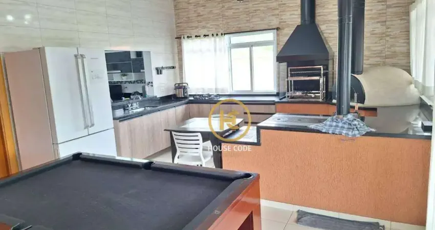 A cozinha planejada, totalmente integrada à área gourmet, combina praticidade e elegância, criando o cenário perfeito para receber amigos e familiares. O espaço gourmet é completo, equipado com churrasqueira, forno, fogão a lenha e amplo espaço para jogos, ideal para momentos de lazer e confraternização.