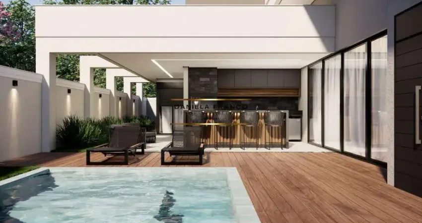 A casa apresenta um pé-direito alto, domus, além de amplas janelas e portas de vidro que permitem excelente entrada de luz natural e favorecem a circulação de ar, criando um ambiente agradável e bem iluminado. Para quem trabalha em home office, o escritório foi planejado com uma vista privilegiada, permitindo atender visitas sem comprometer a privacidade dos demais ambientes da casa. Além disso, o espaço tem fácil acesso à área de lazer, ideal para supervisionar crianças enquanto brincam.