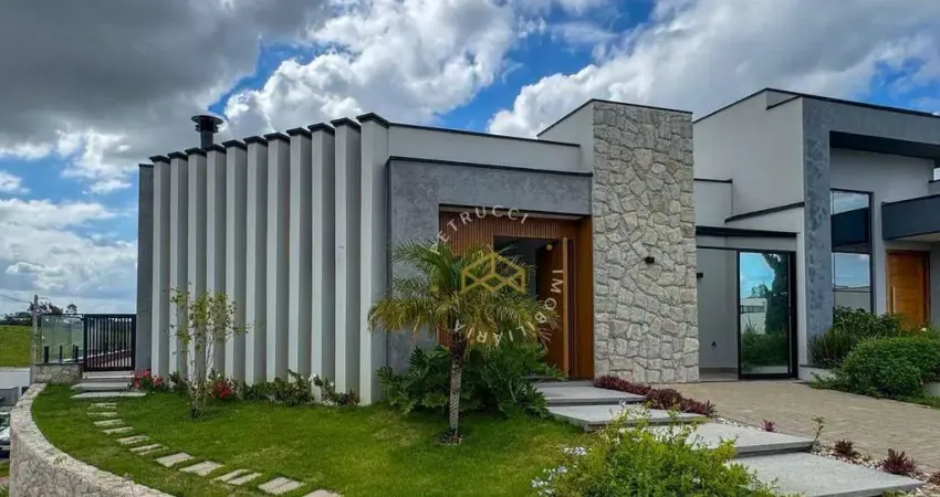 Destaques do imóvel: Casa com 263m² de construção, 3 suítes, sala de estar com painel e rack, cozinha com planejados, lavabo e lavanderia, persianas automatizadas, infra para ar condicionado, box de blindex até altura das portas, boiler de 600 litros, caixa d´agua 2.500 litros, cobertura metálica com telha sanduiche, acústica e termo. Quintal, paisagismo e piscina aquecida, churrasqueira, banheiro, 3 vagas cobertas,