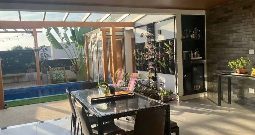 Charmoso, sustentável e acolhedor! Com ambientes amplos e vista permanente para área verde, a casa proporciona uma experiência única para quem busca qualidade de vida, funcionalidade e sofisticação. Com 3 dormitórios, planejados em todos os ambientes, piscina aquecida, sauna, energia fotovoltaica e soluções arquitetônicas inteligentes, está localizada no Condomínio Mantova, a apenas 5 minutos do Parque Ecológico.