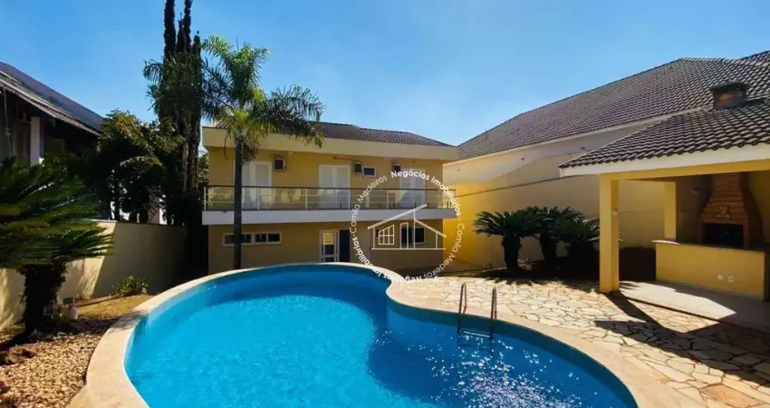 A casa conta com 3 dormitórios, todos suítes, totalizando 5 banheiros, além de uma ampla sala de estar integrada a espaços de convivência. A área externa é perfeita para momentos de lazer, com piscina e churrasqueira, ideais para receber amigos e familiares.