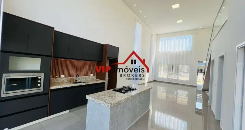 A casa ainda dispõe de sala de jantar e estar, lavabo, cozinha planejada com ilha em mármore e cooktop, área de lazer com churrasqueira moderna, despensa, lavanderia com móveis planejados, espaço para escritório ou sala de estar no andar superior e uma ampla sacada com vista incrível.
