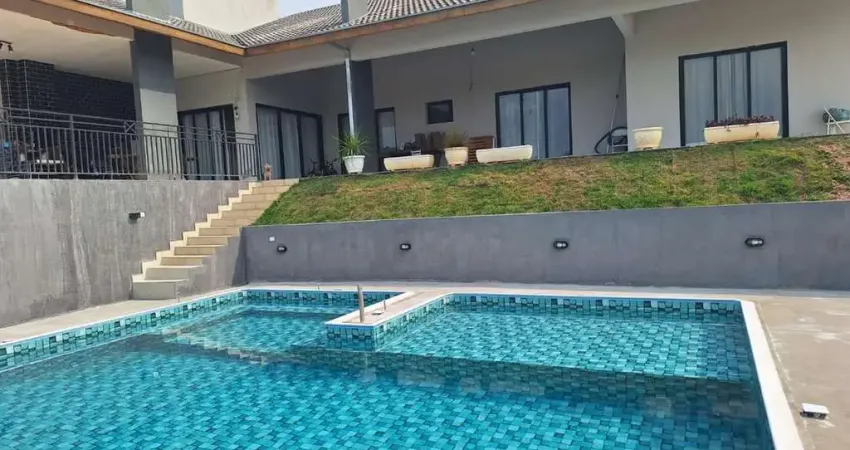Venha viver o sonho em uma linda casa à venda no exclusivo condomínio Vale dos Lagos, em Jacareí, SP. Com uma excelente estrutura de lazer, incluindo um deslumbrante lago e um bosque natural, o local é ideal para quem busca qualidade de vida e tranquilidade. Esta casa de alto padrão, com um projeto arrojado e moderno, ocupa um terreno de 1955 metros e conta com 399 metros de área construída. A propriedade dispõe de 3 dormitórios (sendo 1 suíte), 3 banheiros, 2 salas, piscina, churrasqueira e 6 vagas, oferecendo todo o conforto e a sofisticação que você e sua família (link removido) sua visita. Para mais informações: Ademir Imóveis: (12) / Whats (12)9 O VALOR PODE SOFRER ALTERAÇÃO SEM AVISO PRÉVIO