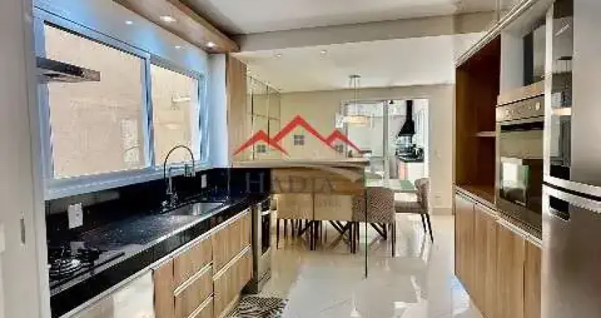 Com 133m² em 3 dormitórios sendo 1 suíte e 1 Closet, todos os dormitórios com moveis planejados e ar condicionado, 3 banheiros, lavabo, área de serviços, corredor lateral, sala para 2 ambientes e ar condicionando, cozinha rica em planejados de alta de qualidade, fino acabamento, sala de jantar, quintal com espaço gourmet e churrasqueira e 3 vagas de garagem sendo 2 cobertas.