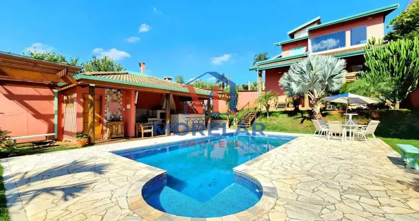 Contemplando 850m2 de área total e 250m2 de área construída com fino acabamento e uma surpreendente riqueza de detalhes, o imóvel possui 3 suítes, (suíte master com closed) (seuíte superior com hidromassagem) sala de estar para 3 ambientes, sala de jantar integrada com uma cozinha intimista e funcional, sala íntima de tv com lareira, espaço gourmet com trio caipira de churrasqueira, forno e fogão à lenha, piscina, amplo quintal com paisagismo exclusivo, garagem com 2 vagas cobertas e 2 vagas descobertas. Venda com porteira fechada!