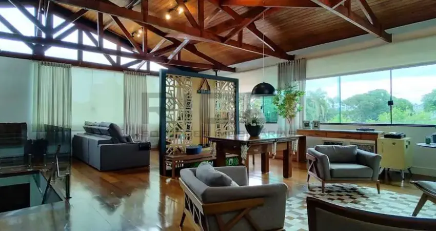 No andar superior, conta com 3 dormitórios, sendo 2 suítes, garantindo conforto e privacidade à família. A sala de estar possui aproximadamente 80 m2, distribuída em dois ambientes, perfeita para receber convidados com conforto. Ainda neste pavimento, a área gourmet com cerca de 35 m2 dispõe de churrasqueira, chuveirão e banheiro, ideal para momentos de lazer e confraternização.