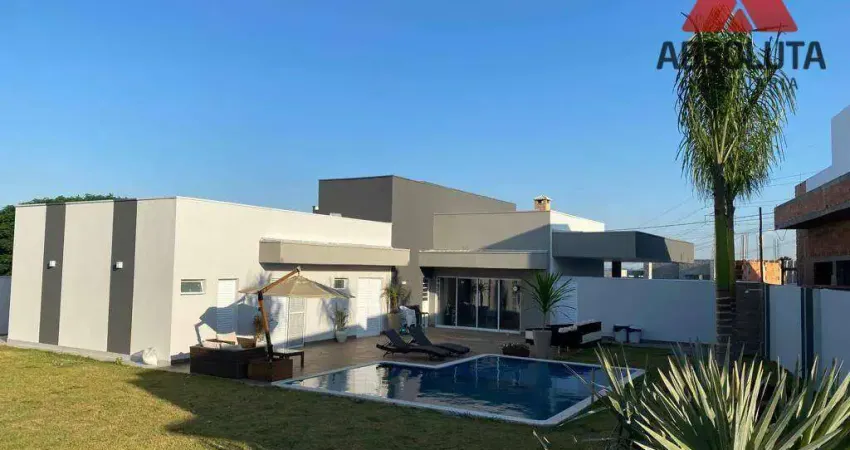 Excelente casa térrea em condomínio fechado contendo 03 suítes (suíte máster com closet), sala de jantar, sala de tv, cozinha planejada, lavabo, espaço gourmet com piscina e churrasqueira, banheiro e 04 vagas de garagem.