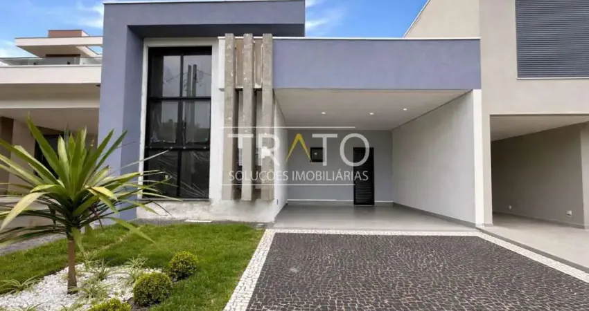 Projeto moderno de casa à venda, no condomínio Terras da Estancia em Paulínia, conceito aberto, ambientes integrados, sala para 2 ambientes TV e jantar, cozinha, lavanderia, área intima 3 dormitórios, sendo 1 suíte.