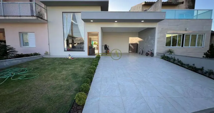 Casa térrea luxuosa de alto padrão à venda, venha desfrutar da tranquilidade de um condomínio fechado, com portaria 24 horas.