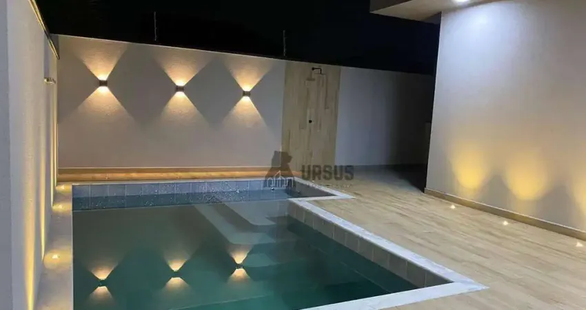 Excelente casa terrea com 245m2 de área construída em um terreno de 450m2. Casa com 3 suítes, sendo 1 master com closet. Todas as suítes com janelas motorizadas; Cozinha com pia e ilha em nanoglass; Sala ampla com pé direito alto; Escritório; Lavabo; Lavanderia; Garagem para 4 carros, sendo 2 cobertos; Piscina; Banheiro para área gourmet e piscina; Área gourmet com pia, ilha e acabamento da churrasqueira em preto São Gabriel escovado; Casa toda com teto rebaixado em drywall; Casa em ótima localização dentro do condomínio.