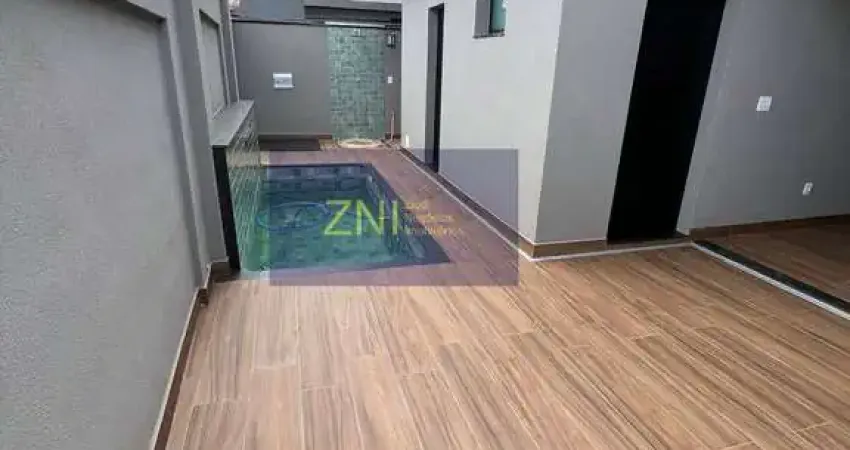 Casa nova com 3 suítes, escritório, lavabo, sala com pé direito duplo, cozinha com cooktop, exaustor, forno, área de serviço, área gourmet, corredor lateral, piscina aquecida, iluminada, cascata e hidro, banheiro na área da piscina, aquecimento de água nos banheiros e pias, completo em armários, ar condicionado na sala e dormitórios, iluminação diferenciada, acabamento moderno, 4 vagas.