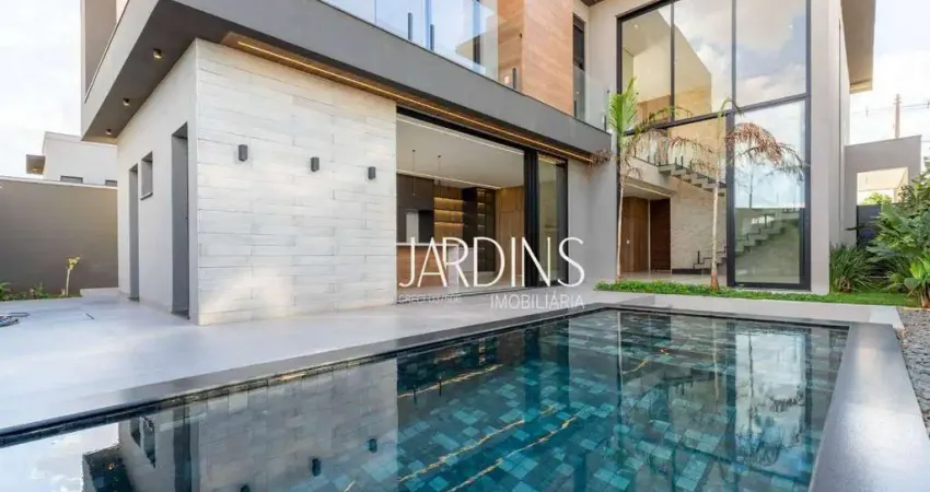 A cozinha integrada à área gourmet cria um ambiente moderno e acolhedor, perfeito para receber. Na parte externa, destaque para a piscina com lounge privativo, paisagismo completo, vestiário e depósito, formando um verdadeiro refúgio particular.