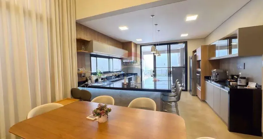 A sala com pé-direito alto é um dos grandes destaques, integrando-se de forma harmoniosa à cozinha planejada e à área gourmet, criando um ambiente perfeito para receber amigos e familiares.