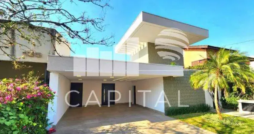 Com projeto moderno, clean e localização privilegiada no residencial, próxima à portaria, a casa possui 3 suítes, sala íntima, living para três ambientes integrados à cozinha e área de lazer, lavabo, lavanderia e dependência para empregada.