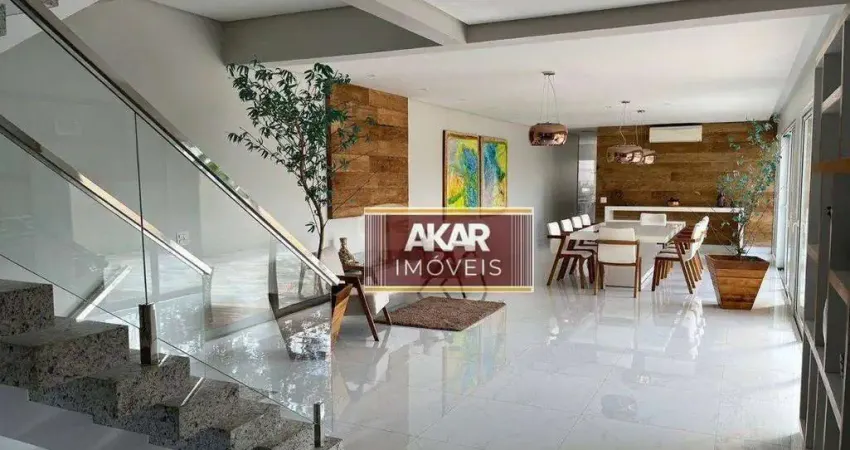 Residência deslumbrante situada em um condomínio fechado, com 3 suítes, incluindo uma suíte master, todas com móveis planejados. A sala é espaçosa, comportando 3 ambientes, e há um lavabo e um escritório. A cozinha ampla está completamente equipada, acompanhada por uma despensa e um elevador de carga. A área gourmet é generosa, com churrasqueira, e uma piscina aquecida complementa o espaço. São disponibilizadas 4 vagas de garagem, e o sistema de aquecimento solar é um diferencial. O acabamento é de excelente qualidade, proporcionando um ambiente requintado.