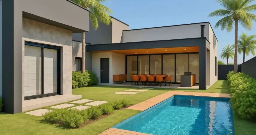 São 3 suítes completas, todas com closet, sendo a máster com banheira, todas possuem porta balcão com acesso ao jardim; dormitório adicional que pode ser utilizado como home office, home theater, opção reversível para mais uma suíte; banheiro social com chuveiro; sala de estar, sala de jantar e cozinha americana, integrados, com pé direito duplo; despensa; lavanderia; área gourmet com churrasqueira, banheiro completo para uso da área gourmet, piscina de alvenaria; garagem coberta para 2 carros e descoberta para 2 carros; 2 hobby box, fachada ampla, com arquitetura moderna;